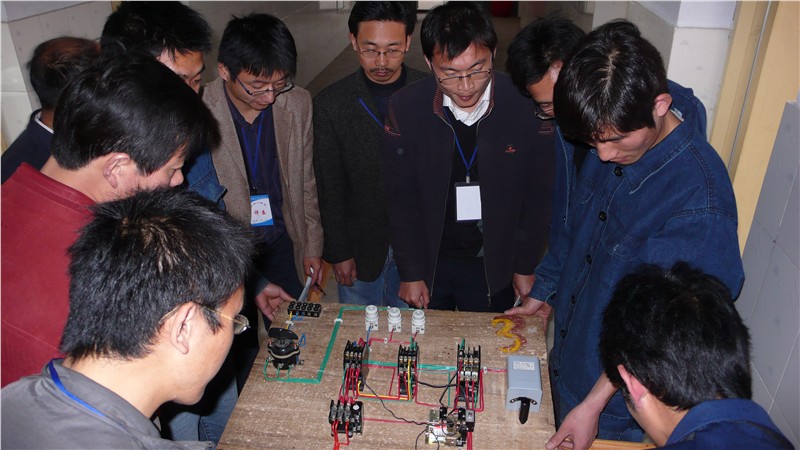 2011年4月25日上午8时,英国365bet在实训楼举办了商丘职业技术学院第一届电气技能大赛,共有7团队,28个小组参加了本次竞赛。竞赛采取制作控制面板,根据选手工艺布置、安全性能等方面进行评分,最后通过接通电路检查任务完成情况,决出团体奖和单项奖进行全员表彰。院领导和教务处对此次竞赛非常重视,李成建处长在汪洋主任陪同下来到现场视察,对工作进展情况给予了具体的要求。