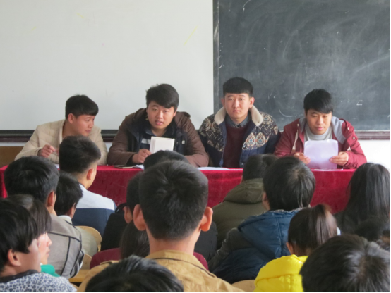会议上,团学会主席朱赫首先对上周辩论赛、双十一晚会进行总结,并指出其中的不足之处。随后提出本周继续进行“卫生大比拼”和迎新篮球赛,各部室之间要相互配合,确保各项活动顺利进行。