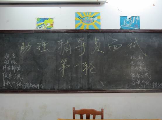 下午4:00整,参加助理辅导员面试的30余名学生干部全体正装,进入合堂内领取标有号码的卡片,写上相应内容后,在合堂内思考准备,等待面试。下午5:00整,第一轮面试正式开始,面试过程的自我展示环节,同学们表现出的大胆和自信,彰显新时代年轻人的特点,虽然有些同学表达不够精炼完善,但是都充分的将自己的特长和有点表现出来,为筛选过程提供了良好的参照。