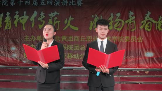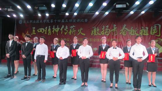 在五四青年节来临之际,为弘扬五四精神,加强革命传统教育、爱国主义教育和社会主义理想信念,进一步激发大学生的爱国主义热情,54日下午,商丘职业技术学院在明德楼六楼举办以五四精神传薪火,激扬青春献祖国为主题演讲比赛。各系(院)团总支书记和各系(院)学子代表们参加此次活动。