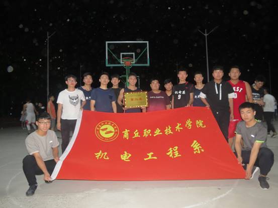 下半场开始时,两队队员没有一丝疲惫之感显露,反而是天色黯淡了许多。但是,这丝毫没有影响到两队队员的状态,反而让参赛选手更加饱含热情的投入到比赛中.举办比赛的目的并不是为了一较高下,参与比赛的目的也不是为了输赢,重要的是拥有团队精神和融入集体为之奋斗的信念和永不言弃的精神。最后,机电系以小比分的差距惜败,荣获第二名。比赛圆满结束,参赛选手拍照留念。