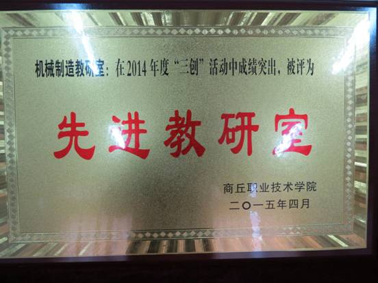 2015年5月7日,商丘职业技术学院2014年度“三创”活动成绩揭晓,英国365bet在活动中表现突出,被评为“先进教学管理单位”。